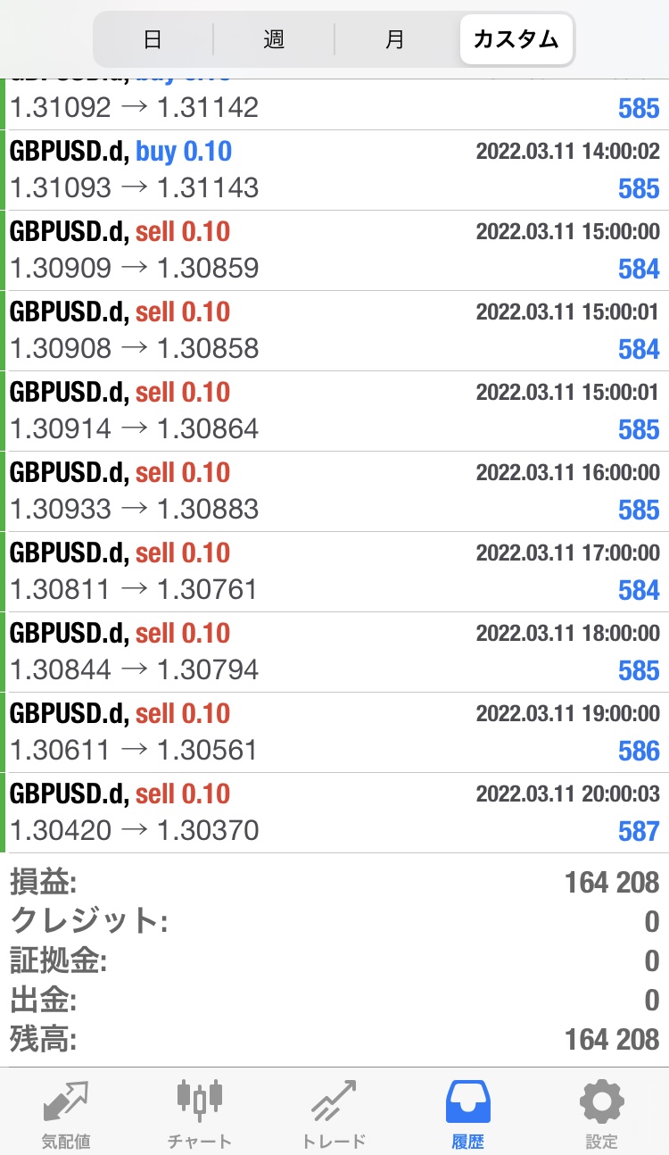 スコーピオン検証(2022年3月7日~3月11日) 検証 Twitter Facebook はてブ Pocket LINE コピー 2022.03.12 【週報】2022年3月7日~3月11日:164,208円(週利:+16.4%)(※100万円証拠金によるロット設定)