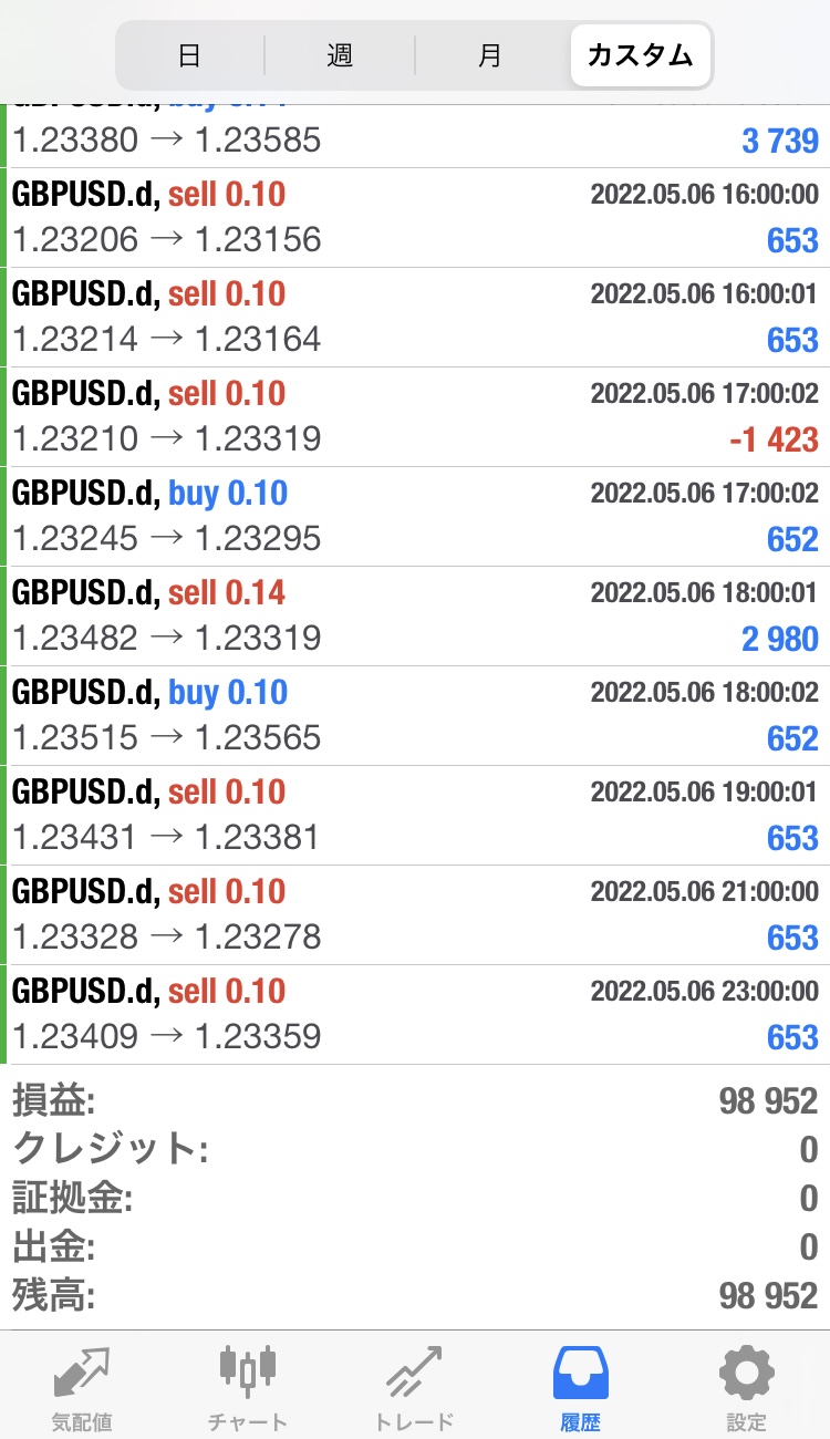 スコーピオン検証(2022年5月2日~5月6日) 検証 Twitter Facebook はてブ Pocket LINE コピー 2022.05.07 【週報】2022年5月2日~5月6日:98,952円(週利:+9.8%)(※100万円証拠金によるロット設定)