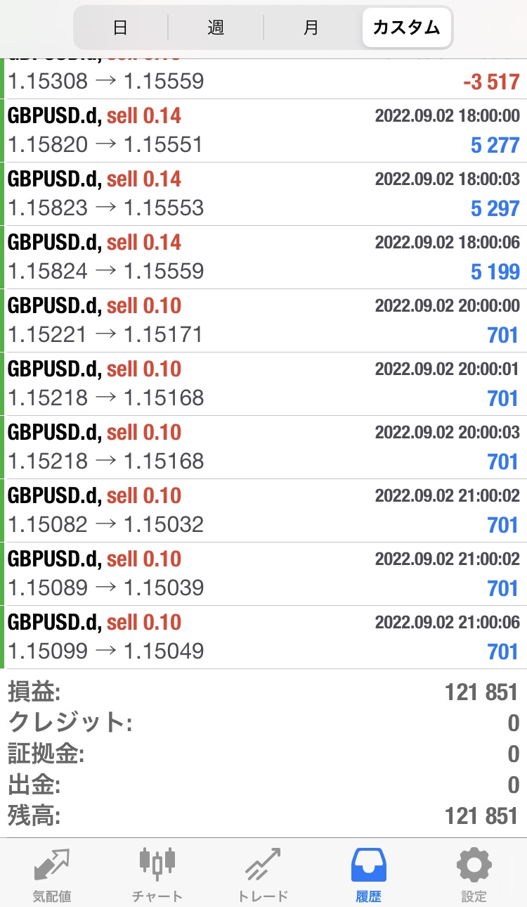 スコーピオン検証(2022年8月29日~9月2日) 検証 Twitter Facebook はてブ Pocket LINE コピー 2022.09.03 【週報】2022年8月29日~9月2日:121,851円(週利:+12.1%)(※100万円証拠金によるロット設定)