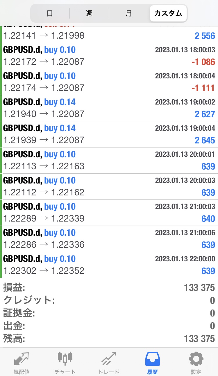 スコーピオン検証(2023年1月9日~1月13日) 検証 Twitter Facebook はてブ Pocket LINE コピー 2023.01.14 【週報】2023年1月9日~1月13日:133,375円(週利:+13.3%)(※100万円証拠金によるロット設定)